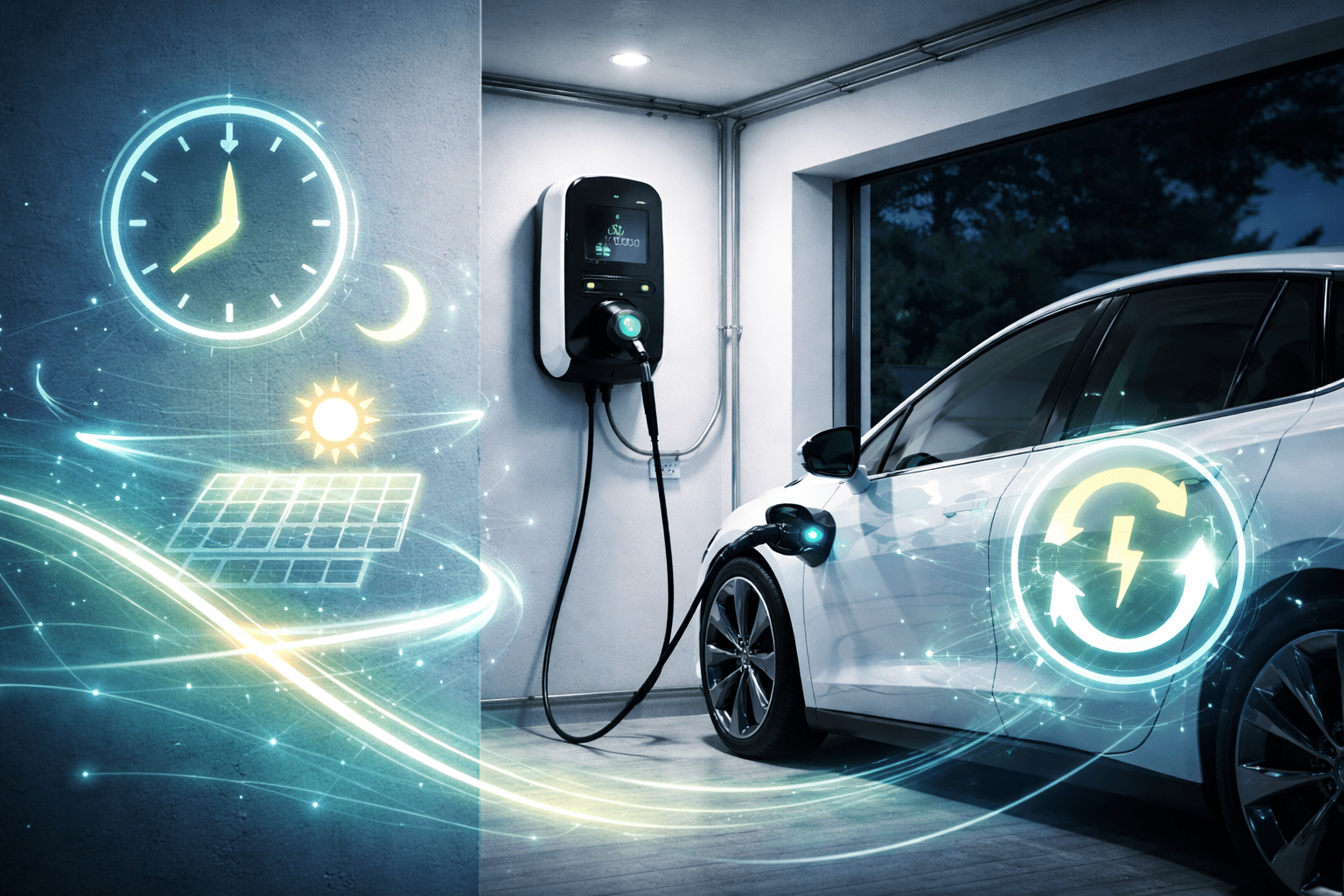 Es un sistema que optimiza la recarga del vehículo según horarios, potencia disponible o producción solar.